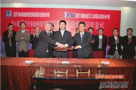 2月8日,在艾美酒店隆重舉行了廈船重工和廈門(mén)弘信2+2艘57000DWT散貨船和雙方戰(zhàn)略合作協(xié)議的簽字儀式。