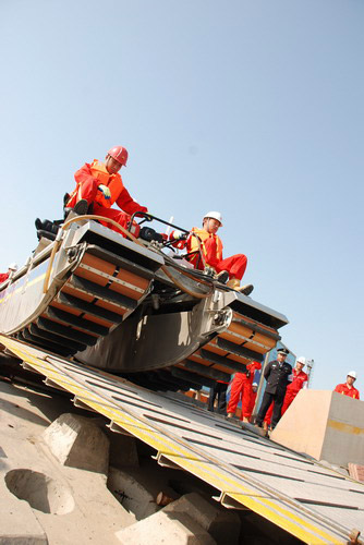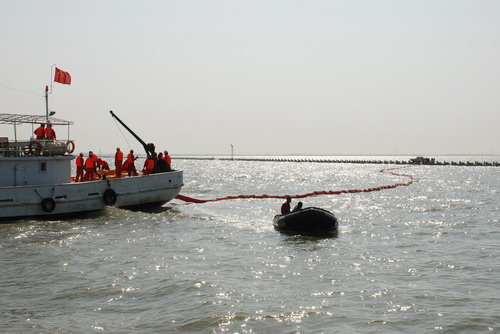 5月13日,大港油田灘海開發(fā)公司首次應(yīng)用自備應(yīng)急設(shè)備,組織開展溢油應(yīng)急演習(xí)。演習(xí)假設(shè)灘海油田當(dāng)天發(fā)生海上溢油,公司立即啟動(dòng)應(yīng)急預(yù)案,設(shè)置圍油欄,組織溢油回收布控。公司自備的收油設(shè)備,毛刷式收油機(jī)、輪鼓式收油機(jī)、巖石收油機(jī)、真空吸油機(jī)、兩棲船,紛紛下海各顯神通。