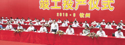 廣西壯族自治區(qū)黨委書記、人大常委會(huì)主任郭聲琨宣布工程竣工投產(chǎn)。
