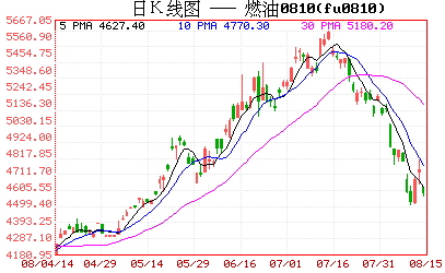 燃料油(4594,-130.00,-2.75%,吧)走勢分析: