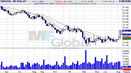 今年,在高油價的影響下,出現(xiàn)了世界性的通貨膨脹,世界上有超過50個國家的CPI已經達到兩位數(shù),全球經濟也受到高油價的打擊而放緩,高油價成了世界高度關注的問題。在這樣的背景下,美國國會、期貨交易管理委員會等機構開始對原油市場進行調查是否存在操縱油價的行為,從而對投機資金形成較大的威懾作用。實際上這種監(jiān)管已經對市場產生了很大影響,主要表現(xiàn)在基金的凈多單逐漸大幅減少,已經由3月11日的11萬多手凈多單不斷減少,而到8月5日變成了凈空單5550手,原油期貨總持倉由當時的148萬手減到125.5萬手。兩周前為122萬手,資金退出市場明顯。