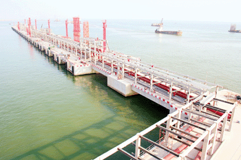 中國(guó)石油廣西石化10萬(wàn)噸級(jí)碼頭工程位于欽州港鷹嶺作業(yè)區(qū),屬于中國(guó)石油廣西石化 1000萬(wàn)噸 /年煉油工程的專用配套碼頭,碼頭呈“L”型布置,為重力式結(jié)構(gòu),碼頭總長(zhǎng)609米、寬36米,建設(shè)規(guī)模為2個(gè)10萬(wàn)噸級(jí)泊位、1個(gè)3000噸級(jí)和1個(gè) 5000噸級(jí)泊位,碼頭通過(guò)長(zhǎng)238米的引橋接岸,為灌樁梁板結(jié)構(gòu)。中國(guó)石油廣西石化1000萬(wàn)噸 /年煉油工程包括10套主體生產(chǎn)裝置以及公用工程、鐵路專用線、碼頭及碼頭庫(kù)區(qū)等配套設(shè)施,主要立足于加工中國(guó)石油海外份額原油并兼顧加工高含硫原油的需要,可向西南市場(chǎng)穩(wěn)定供應(yīng)汽油、柴油等輕質(zhì)油以及液化石油氣、聚丙烯等石化產(chǎn)品合計(jì)920萬(wàn)噸。10萬(wàn)噸級(jí)碼頭工程項(xiàng)目建成后,中國(guó)石油廣西石化公司每年將在欽州港進(jìn)口原油1000萬(wàn)噸、出口成品油90多萬(wàn)噸,進(jìn)而為“把欽州建設(shè)成為中國(guó)最重要的能源進(jìn)口基地”、推動(dòng)泛北部灣區(qū)域經(jīng)濟(jì)合作創(chuàng)造條件。
