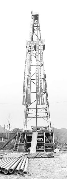 圖為今年4月開鉆的中國(guó)第一口井深超千米的戰(zhàn)略調(diào)查井——貴州省岑鞏縣的岑頁1井