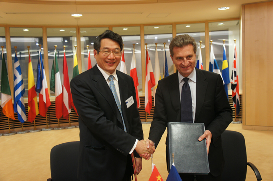 國(guó)家能源局局長(zhǎng)劉鐵男與歐盟能源委員袞特·厄廷格簽署會(huì)議紀(jì)要