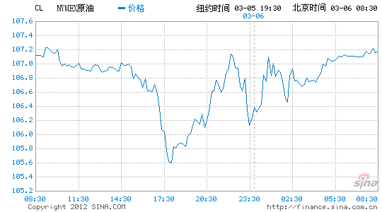 當(dāng)日,紐約商業(yè)交易所(NYMEX)4月份交割的輕質(zhì)原油期貨價(jià)格上漲2美分,報(bào)收于每桶106.72美元,創(chuàng)下自去年4月25日以來最低的單日跌幅。盤中紐約油價(jià)曾最高下跌1.1%,原因是中國(guó)將今年的經(jīng)濟(jì)增長(zhǎng)目標(biāo)下調(diào)至7.5%,是自2004年以來的最低目標(biāo)。今年截至目前為止,紐約原油期貨價(jià)格上漲了8%。